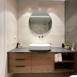 חדר הארונות מעוצב במראה אקלקטי, ארונות בגדים בנגרות בסגנון קלאסי וקיר כח עבור מידוף ותליית תיקים ובשילוב של תקרה בסגנון קלאסי יוצרים אוריה ייחודית בחדר הארונות
